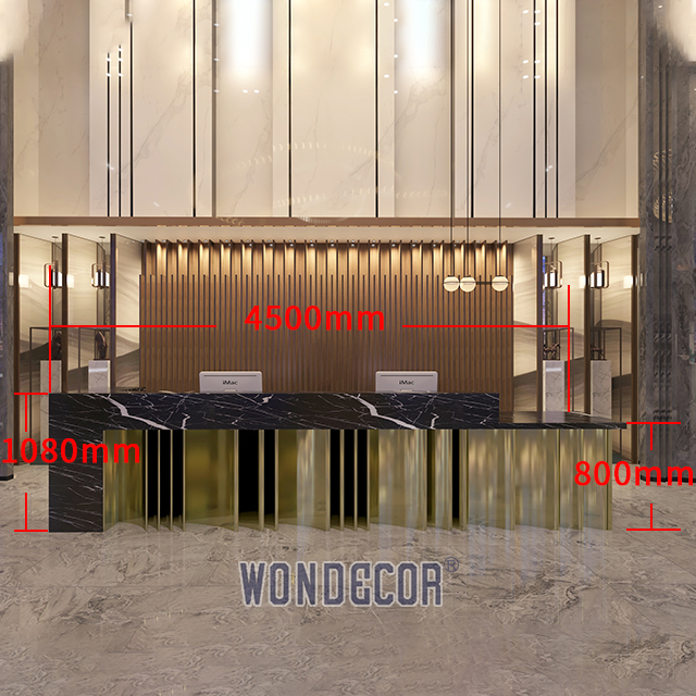 Stainless steel material has excellent corrosion resistance and wear resistance. The material characteristics of stainless steel make the reception desk highly structurally stable, even in high traffic and high frequency of use scenarios. - Personalization and Customization
