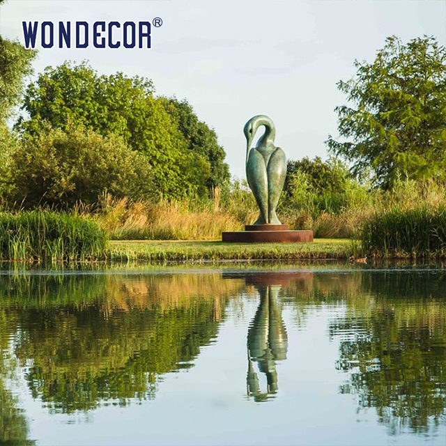 Watervogelbeelden worden vaak gebruikt in verkoopkantoren, binnenplaatsen, parken en andere plaatsen om een rustige en dynamische sfeer te brengen door vogelbewegingen zoals het uitspreiden van hun vleugels en rusten.Bijvoorbeeld:, staat het beeld van een witte egret aan de rand van een waterpoel, en wanneer de wind op het wateroppervlak waait, schommelt de schaduw van de vogel en wordt het visuele middelpunt.De interactieve installatie van waterfuncties verbetert de visuele impact en interactie door middel van lokale kunstschilderkunst.