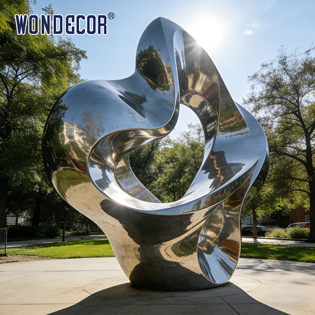 Dit spiegelende roestvrijstalen beeld is vervaardigd met behulp van geavanceerde smeed-, polijst- en afwerkingsprocessen, waardoor het ideaal is voor decoratieve toepassingen in tuinen, parken, pleinen en diverse buitenomgevingen.